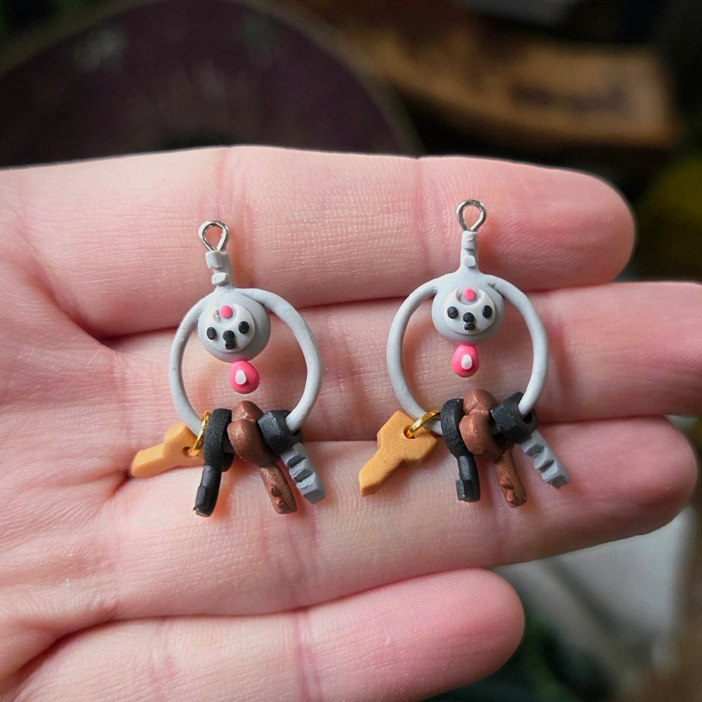 Each piece is handmade out of polymer clay, and coated in a protective, shiny resin.
