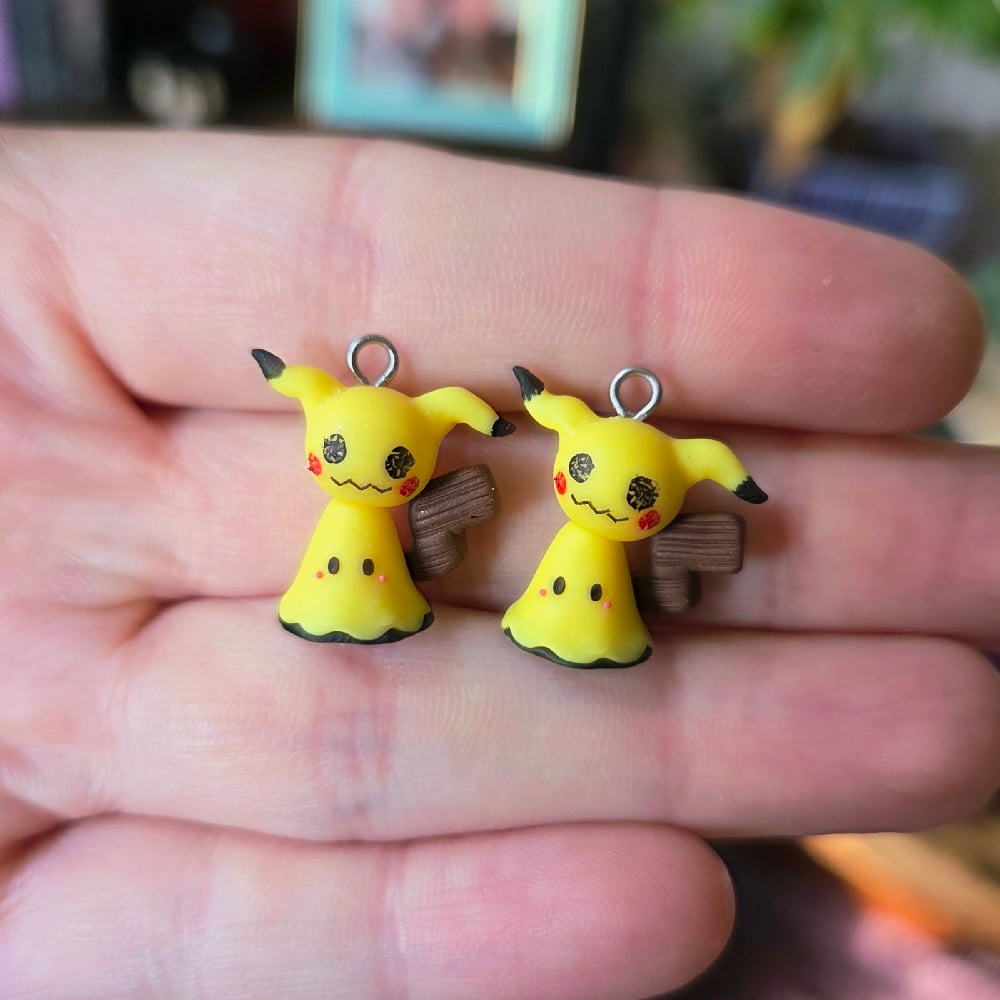 Each piece is handmade out of polymer clay, and coated in a protective, shiny resin.
